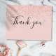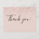A chic rose gold glitter script business thank you postcard featuring a silver heart. A perfect way to say thank you to your customers and clients. This elegant design is ideal for a wide range of businesses including spas salons hair and makeup stylists boutiques beauticians and florists.