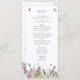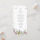 Pretty, summery and elegant, this bridal shower menu card features a lovely design of pink and purple flowers with butterflies and bumble bees flying around.