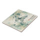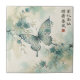 Delicate Chinese ink wash style artwork ceramic tile featuring an ornate teal butterfly surrounded by soft blossoms and flowing branches. Ideal for butterfly lovers, nature enthusiasts, watercolor art fans, and anyone who loves elegant East Asian inspired aesthetics.