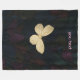 The image shows a woven blanket featuring a large golden butterfly at its centre on a dark textured background with subtle shades of purple and blue. The blanket has fringed edges and includes the customisable placeholder text “you text” in pink along the side.