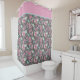 A pretty, feminine butterfly pattern decorates this shower curtain, along with a coordinating pink geometric pattern and a scalloped border at the top of the shower curtain. Designed for you by Blackberry Boulevard.