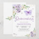 Celebrate a milestone in style with this elegant butterfly Quinceañera invitation featuring pastel purple florals and watercolor butterflies. Perfect for a sweet 16 or quince celebration, this design blends whimsical charm with timeless sophistication. The soft lavender tones, delicate greenery, and graceful butterfly accents create a dreamy atmosphere for your special day. Customize with your event details to make it uniquely yours and impress guests with a beautiful keepsake.