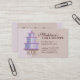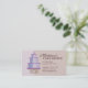 A sweet design for a sweet shop - perfect for a bakery, or speciality cake maker. A pretty party cake with pink icing and confetti sprinkle decorations sits atop a delicate brown cake stand, on a two-tone lilac purple and cappuccino background. Deep chocolate brown text on both front and back that you can easily customise with all your important business information.