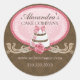 © 2012 Socialite Designs. Our couture cake bakery box seals / stickers have an elegant cake with flowers and swirls, and topped with a ribbon. The background and text banner have a subtle damask design.