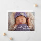 This beautiful photo baby announcement features a gorgeous calligraphy script overlaying a full-bleed photo of your new little one.