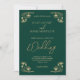 Elegant calligraphy & ArtDeco gold & green wedding Invitation