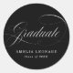 Elegant Calligraphy Black and White Graduation Classic Round Sticker
