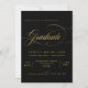 An elegant graduation invitation featuring "graduate" in gold script calligraphy font on a black background.