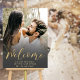 Elegant, chic wedding signage with black gradient and hand written script in gold. Add your own couples photo and customise with your unique details.