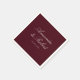 Minimalist personalized wedding napkins featuring elegant calligraphy names in burgundy and cream color design.