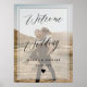 Modern elegant Simple minimalist elegant calligraphy script wedding welcome sign with white photo overlay