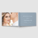 This elegant wedding guest book is perfect for stylish, modern weddings. The guest book features your names and wedding date in white lettering with a dusty blue background. Add your custom text to the spine of the minimalist wedding guest book. The back of the dusty blue wedding guest book features your horizontal engagement photo.