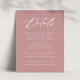 Our Elegant Calligraphy wedding collection features a beautiful, white calligraphy script with a dusty rose background. Personalise this matching wedding enclosure card with important wedding details such as hotel accommodations, wedding website, travel arrangements, welcome receptions, and more. The dusty rose wedding details card is perfect for both formal and casual weddings of any season.