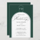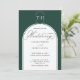 Emerald Green wedding invitation with elegant script calligraphy, logo style monogram and modern arched frame. Simple elegance, in green and white. Coordinating invitations, stationery and day of event decor can be found in my Wedding Colours collection. If you would like different colours or additional templates for matching products, please message me to add them for you.