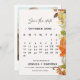 This elegant fall wedding card has an editable calendar and an exquisite script font feature a lovely fall design. Change the month and fill in the dates for each day of the month.In the personalisation section, click the blue 'edit using design tool' button to move the heart.