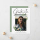 Elegant calligraphy botanical floral, photo graduation announcement. Design features, faux gold foil frame adorned with watercolor lilies and delicate greenery. Backing colour shown in coordinating sage green can be customised.