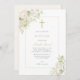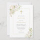 The design is adorned with beautiful white watercolor floral decorations, adding a touch of natural beauty and grace. The delicate flowers gently frame the text area, creating a harmonious and inviting look. At the heart of the invitation, elegant gold lettering highlights your baby's baptism information.