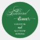 Elegant Calligraphy Forest Green Rehearsal Dinner Classic Round Sticker
