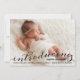 This beautiful photo baby announcement features a gorgeous calligraphy script overlaying a full-bleed photo of your new little one.