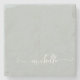 Elegant Chic Modern Sage Green Monogram Name Signature Script Custom Personalised Stone Coaster. This design featuring custom name in a cursive hand lettered swash tail font calligraphy (or typography) on sage green or dusty green background. These are easy to customise it. Great stylish feminine housewarming gift, also for birthday, wedding, sweet 16 birthday party, bridal shower, mother’s day and It’s for the girl who loves unique stylish things.