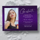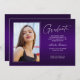 Double sided, two photo modern and elegant graduation announcement cards, featuring design elements of modern text with a unique handwritten style ink script. The graduate's photos on the front & back of the card are accented with a delicate & minimalist gradient boarder (The back photo is perfectly set and ready to be framed). The background is a special gradient design, creating beautifully vibrant shades of purple ranging from violet to deep lavender. The front of the card offers personalised text spaces for information about your graduation or can be reworded to make this card a grad party invitation. Perfect for the high school, college and university grad student.