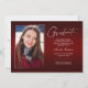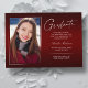 Double sided, two photo modern and elegant graduation announcement cards, featuring design elements of modern text with a unique handwritten style ink script. The graduate's photos on the front & back of the card are accented with a delicate & minimalist gradient boarder (The back photo is perfectly set and ready to be framed). The background is a special gradient design, creating beautifully vibrant shades of red ranging from ruby to deep burgundy. The front of the card offers personalised text spaces for information about your graduation or can be reworded to make this card a grad party invitation. Perfect for the high school, college and university grad student.