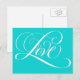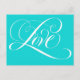 Elegant Calligraphy Love Heart Teal Aqua Blue Postcard