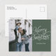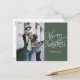 Elegant calligraphy Merry Christmas holiday postcard with family photo. Features an elegant calligraphy script with Khaki christmas background.