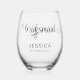 Elegant Calligraphy Name Date Bridesmaid Gift Stemless Wine Glass