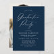 Simple graduation party invitations featuring "Graduation Party" in an elegant white script with a navy background. Personalise the modern graduation party invites with the graduate's name, school, graduation year, and party details below. The back of the navy graduation party invites displays your favourite vertical senior photo. The invites are perfect for both high school and college graduates.
