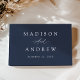 This elegant wedding guest book is perfect for stylish, modern weddings. The guest book features your names and wedding date in white lettering with a navy background. Add your custom text to the spine of the minimalist wedding guest book. The back of the navy wedding guest book features your horizontal engagement photo.