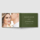 This elegant wedding guest book is perfect for stylish, modern weddings. The guest book features your names and wedding date in white lettering with an olive green background. Add your custom text to the spine of the minimalist wedding guest book. The back of the olive green wedding guest book features your horizontal engagement photo.