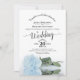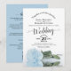 Elegant Calligraphy Pale Blue Rose QR Code Wedding Invitation