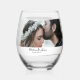 Elegant Calligraphy Photo Wedding Party Stemless Wine Glass