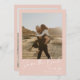 Elegant script calligraphy simple 2 photos pastel blush pink and white wedding save the date.