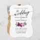 Elegant Calligraphy Purple Floral Photo Wedding Invitation