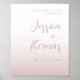 Modern and elegant wedding signage with a rose gold gradient with hand written script in white. Customise with your unique details.