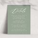 Our Elegant Calligraphy wedding collection features a beautiful, white calligraphy script with a sage green background. Personalise this matching wedding enclosure card with important wedding details such as hotel accommodations, wedding website, travel arrangements, welcome receptions, and more. The sage green wedding details card is perfect for both formal and casual weddings of any season.