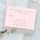 Trendy vintage style handwriting calligraphy script pastel pink and red burgundy wedding RSVP card.