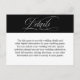 An elegant enclosure card to send with your wedding invitations, this details card has the title text in beautiful silver calligraphy over a contrasting black background with a text template for including important details for your wedding guests. Include any information you wish to convey to your guests, i.e. hotel information, driving directions, special events or gatherings during your wedding week, your wedding website or any other information you wish to provide to your guests. Enter your text in place of the sample text. If you need to re-position the text to centre it, or change the font/font size, choose "customise further". You can drag the text into the desired location to re-centre it.