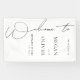 Create your own personalised wedding welcome sign banner with elegant calligraphy script typography and modern minimal black and white design.