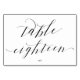 Simple Elegant Calligraphy Script Wedding or Dinner Party Table Number Eighteen written out in beautiful flowing fancy letters. A stylish yet simple formal design in black and white or any background colour you choose. Just click the customise further link, shown under the text personalisation area on the right, and choose your custom colour background. This sign poster template makes it fast and easy to create stunning additions to your wedding decor. Signs can be enlarged, there are many sizes to choose from, as well as options for custom framing and matting. Welcome to our wedding custom signage.