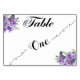 This elegant calligraphy table one table number is perfect for a simple wedding with purple flower. The neutral design features a minimalist card decorated with romantic and whimsical faux foil typography. The card prints on the front and back (double-sided). Please Note: This design does not feature real gold foil. It is a high quality graphic made design