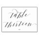 Simple Elegant Calligraphy Script Wedding or Dinner Party Table Number Thirteen written out in beautiful flowing fancy letters. A stylish yet simple formal design in black and white or any background colour you choose. Just click the customise further link, shown under the text personalisation area on the right, and choose your custom colour background. This sign poster template makes it fast and easy to create stunning additions to your wedding decor. Signs can be enlarged, there are many sizes to choose from, as well as options for custom framing and matting. Welcome to our wedding custom signage.
