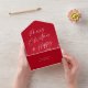 This elegant holiday photo card design features a festive red background with a beautiful calligraphy script greeting and three photos. The inside of the card accommodates text and three photos, one larger vertical and two smaller square photos. On the outside of the card is your return address and personalised greeting. When the photo is torn away as a keepsake the recipient will also have your greeting on the back of the photo portion. Also, as you can see there is need to order envelopes!!