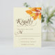 This elegant wedding RSVP card features orange and red watercolor fall leaves with calligraphy script and a minimal design layout. Perfect for a rustic or Autumn wedding.