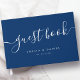 Elegant wedding guest book with the text "guest book" in an elegant calligraphy script font. White or custom colour text on a dark blue background. All colours can be changed in the design tool.