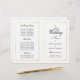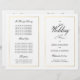 This program is an 8.5 x 11 page that requires you to fold it to assemble. The gold border is a printed gold image. Classic understated black and white wedding program with a modern touch featuring the elegant script of the word "Wedding" on the outside "cover" and gold border.