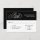 A beautifully elegant wedding RSVP card with lovely calligraphy script RSVP text in silver over a contrasting black background. Edit the response date and other text as you desire. This design includes entree choice selections for your guests. Edit the entree text with your choices (i.e. beef, chicken, vegetarian, etc). You can delete this block of text if you do not need it.