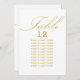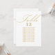 White and gold wedding table seating card with elegant calligraphy and editable typography. Simple, modern minimalist design to suit your wedding colours. Table is lettered in handwritten script and the template is ready for you to edit the table number and your guest seating list.